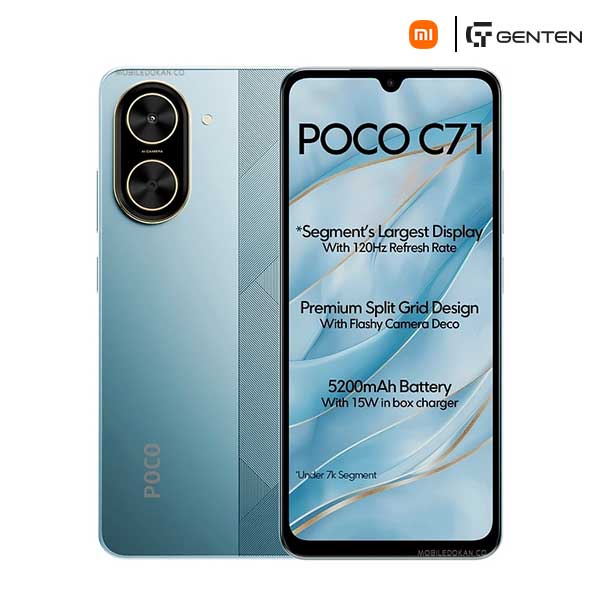You can get the original Xiaomi Poco C71 in Bangladesh from Genten at an affordable price. We have various collection of latest official Xiaomi Phones to buy. Order from our website or visit our official Facebook page or visit Genten Shop to get yours at the lowest price. The Xiaomi Poco C71 comes with 12-month official Warranty.